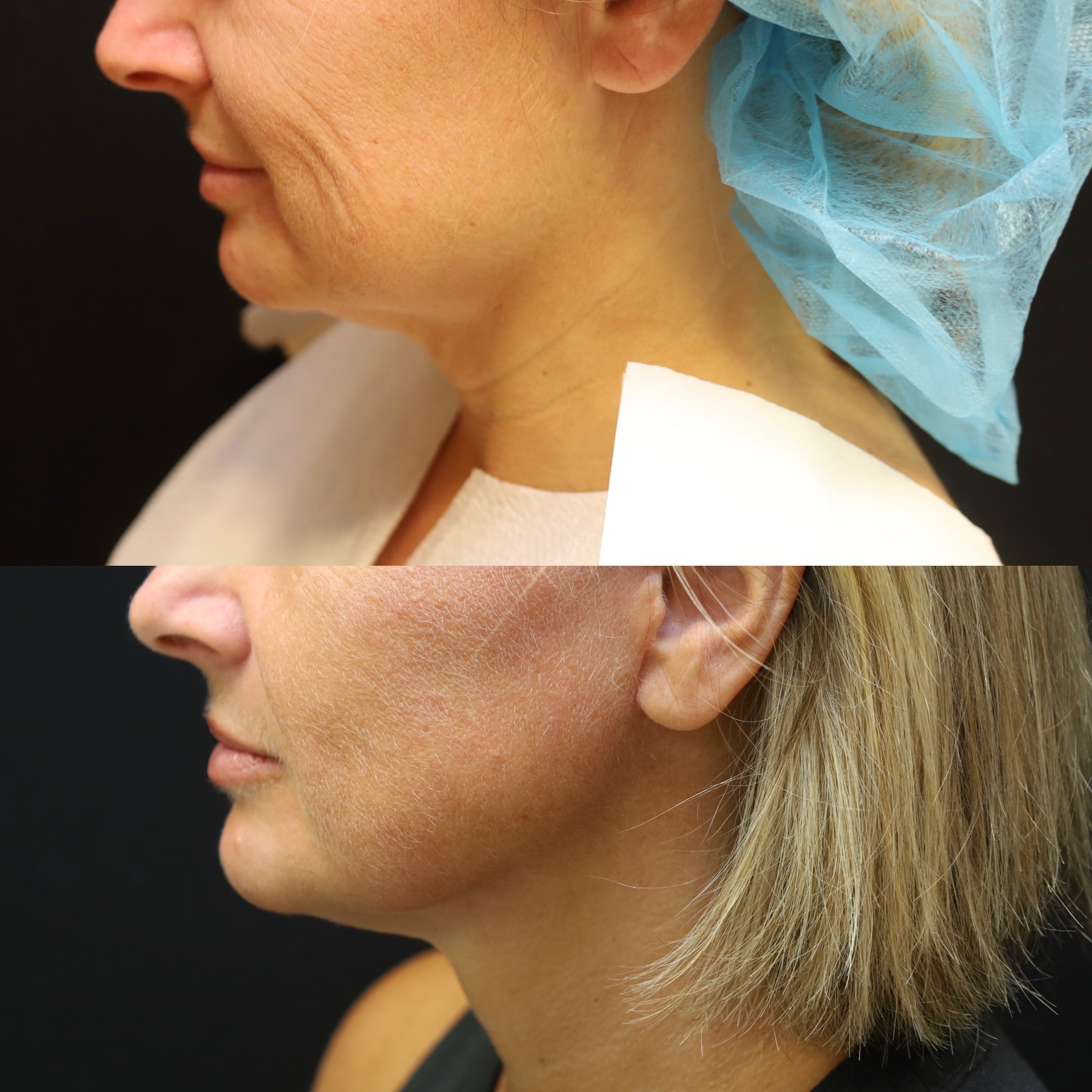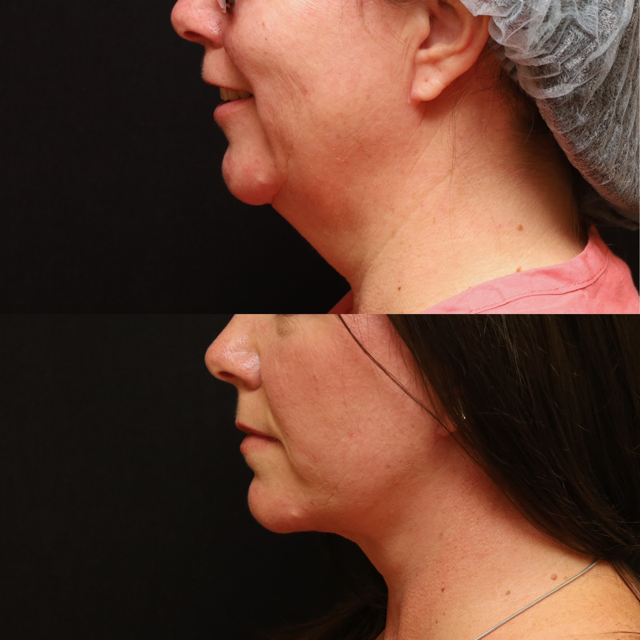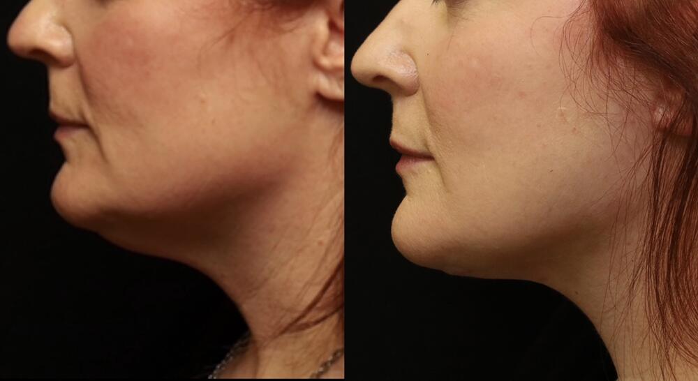 - Loose skin and fat under the chin and jaw